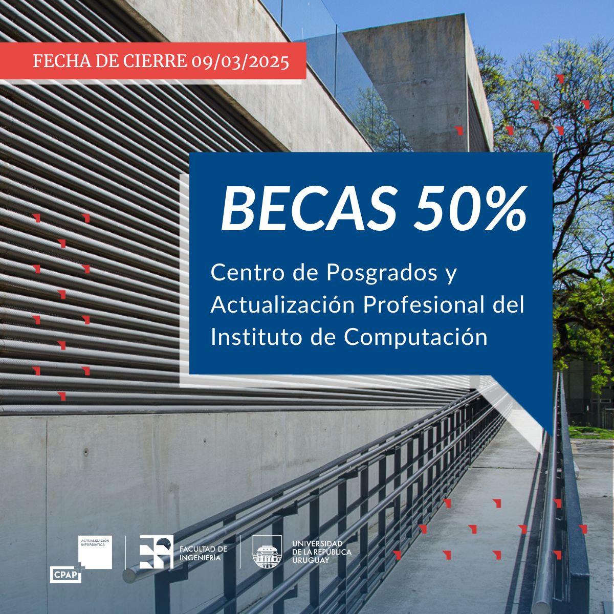 Con el fin de facilitar y promover la formación y el desarrollo de capacidades locales en informática, el Centro de Posgrados y Actualización Profesional en Informática creó el Programa de Becas CPAP 50% que ofrece becas para dos modalidades: