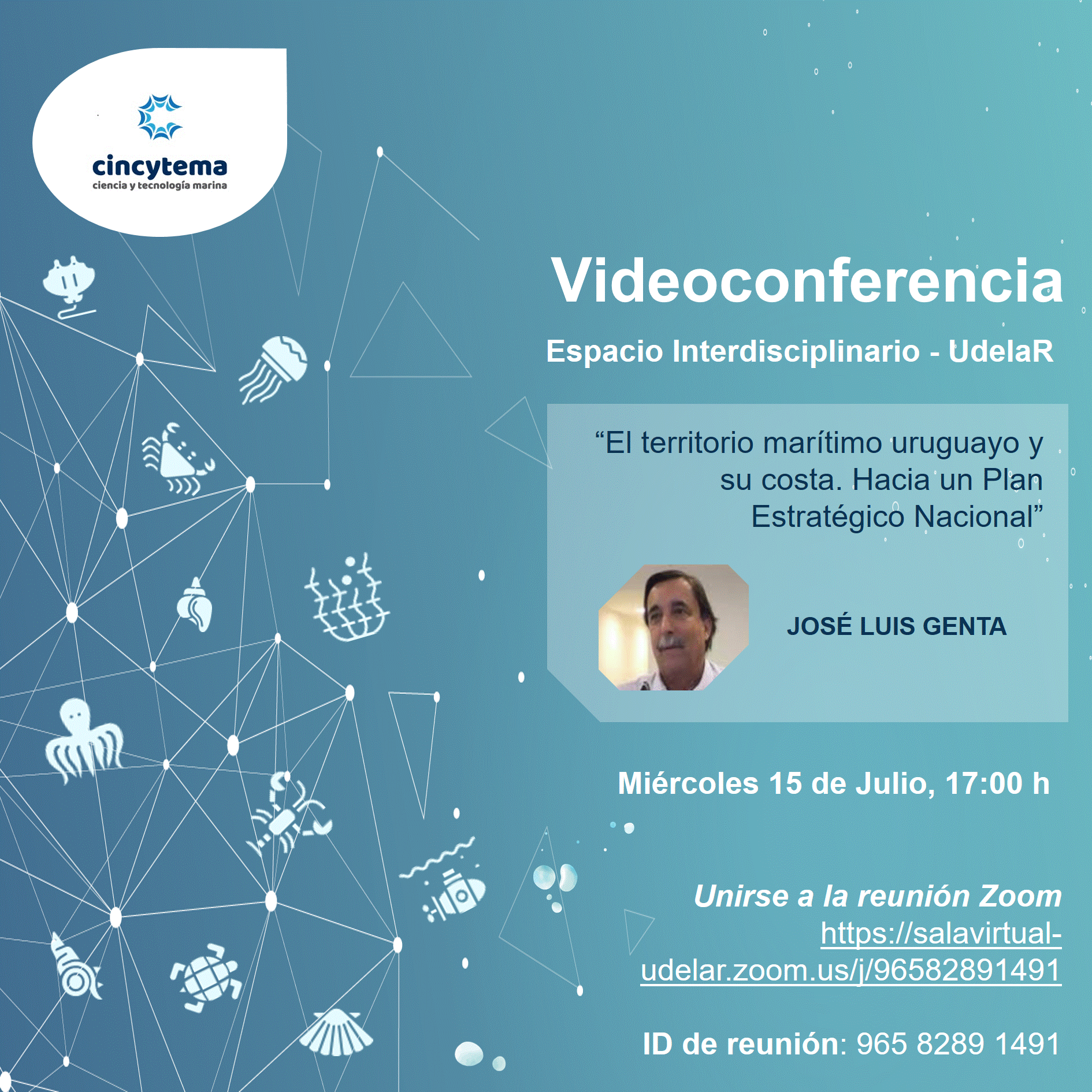 En el marco del proyecto del Espacio Interdisciplinario "Ciencia y Tecnología Marina: Desarrollo de capacidades tecnológicas y de investigación en el área de ciencias del mar” se dictará la videoconferencia “El territorio marítimo uruguayo y su costa. Hacia un Plan Estratégico Nacional” por parte del Ing. José Luis Genta.