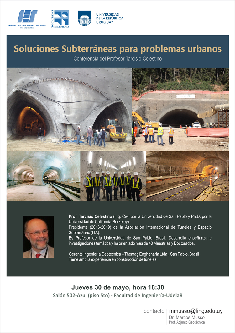 Se llevará a cabo el seminario "Soluciones subterráneas para problemas urbanos", el cual estará a cargo del Ingeniero Civil Prof. Tarcisio Celestino, quien fuera Presidente de la Asociación Internacional de Túneles y Espacio Subterráneo entre los años 2016 y 2019.