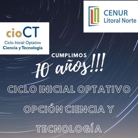 En el marco de los festejos de los 10 años del Ciclo Inicial Operativo opción Ciencia y Tecnología (CIO CT) RN CENUR Litoral Norte y dentro de la semana de la Ciencia y la Tecnología, se llevará a cabo una tertulia  denominada: "Pasado, presente y futuro del CIO CT".