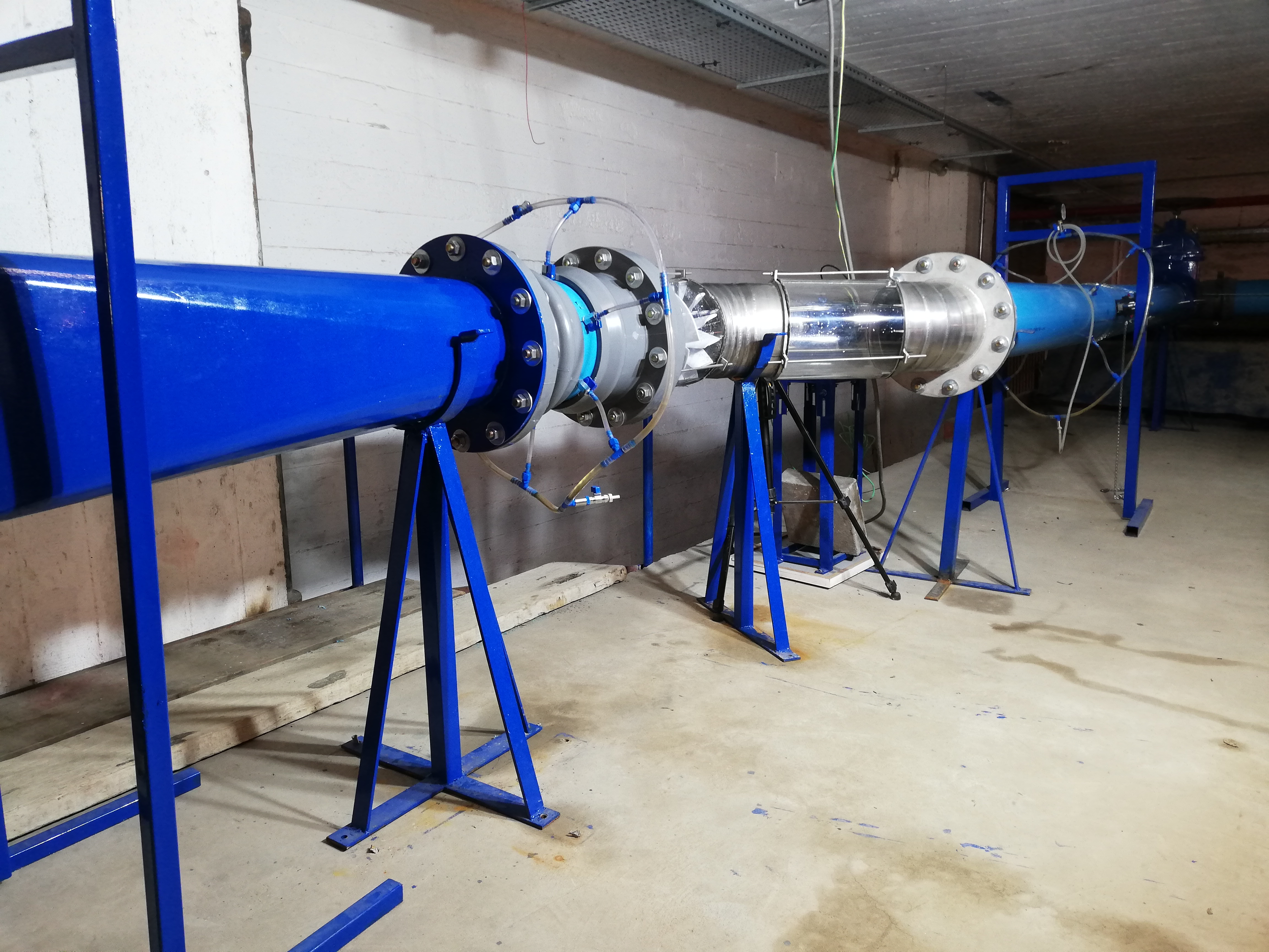 Instalación para realizar ensayos hidromecánicos a bombas y turbinas axiales en modelo a escala y prototipos pequeños de hasta 235mm de diámetro.
