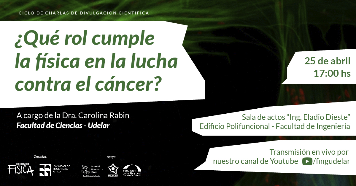 El cáncer es una de las enfermedades que presenta la mayor incidencia y mortalidad a nivel mundial. Por tal motivo, se hacen grandes esfuerzos por detectar indicios de la enfermedad y por desarrollar tratamientos cada vez más personalizados, y hoy en día existen diferentes modalidades para tales fines. Pero, ¿qué rol central cumple la física en este cometido? En esta charla vamos a conversar sobre los aspectos físicos que permiten el continuo desarrollo de tecnologías destinadas a la obtención de imágenes diagnósticas y al tratamiento de esta enfermedad.