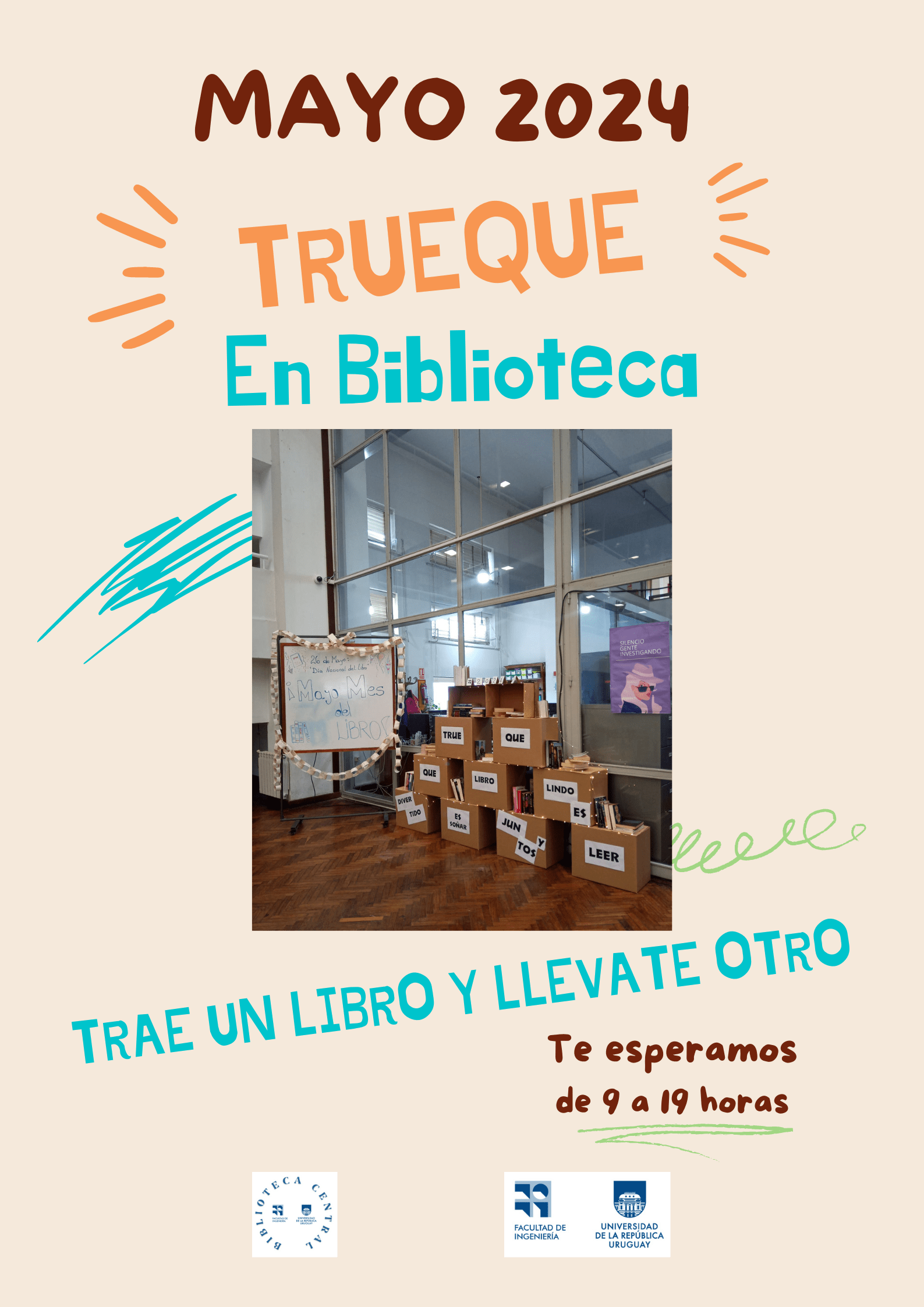 En celebración del Día Nacional del Libro, el 26 de mayo, la Biblioteca Central de la Facultad de Ingeniería de Udelar, organiza un trueque de libros de literatura recreativa.