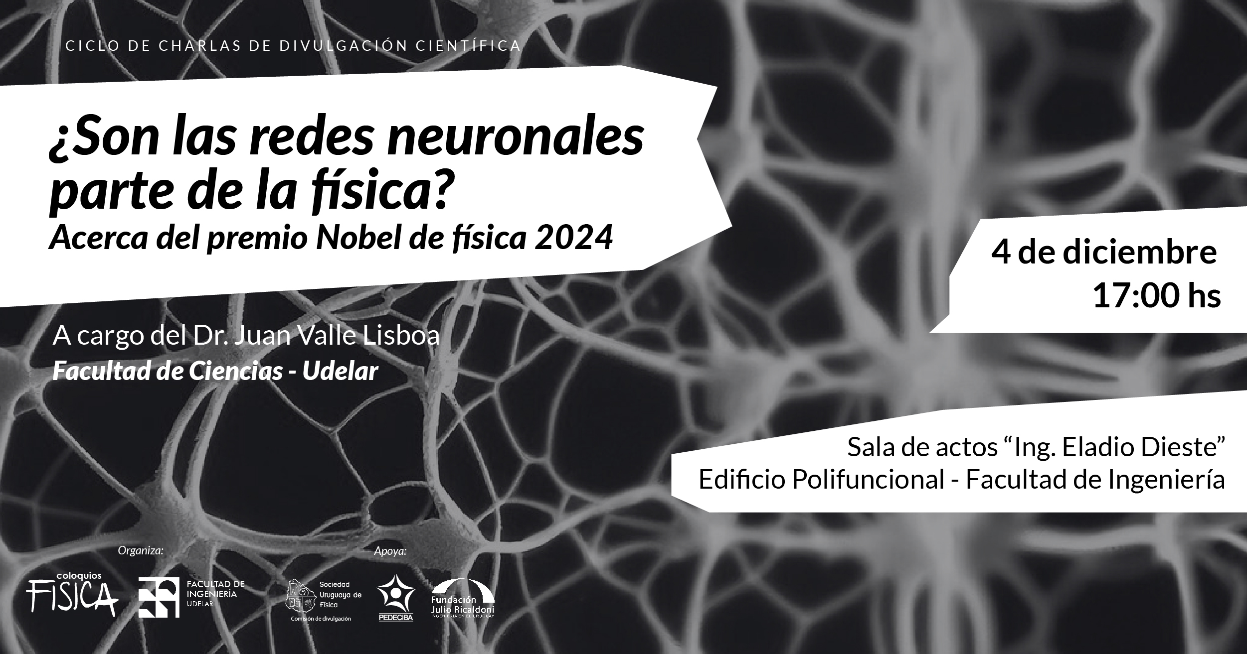 Este miércoles 4 de diciembre de 2024 a las 17 horas, tendrá lugar un nuevo Coloquio de Física: “¿Son las redes neuronales parte de la física? Acerca del premio Nobel de física 2024”. Estará a cargo del Prof. Dr. Juan Valle Lisboa.