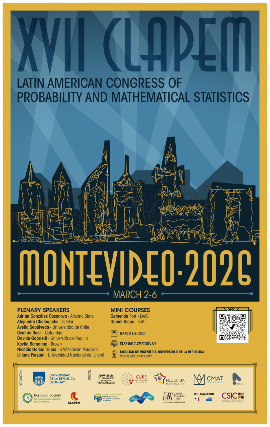 Ya está disponible una versión preliminar del programa del XVII CLAPEM, que incluye dos cursos cortos sobre temáticas actuales en probabilidad y estadística, conferencias plenarias y sesiones temáticas invitadas.