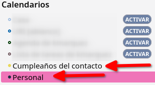 - Terminado el proceso, aparecerán los calendarios sincronizados en la sección Calendarios, ubicada en la barra de la izquierda.