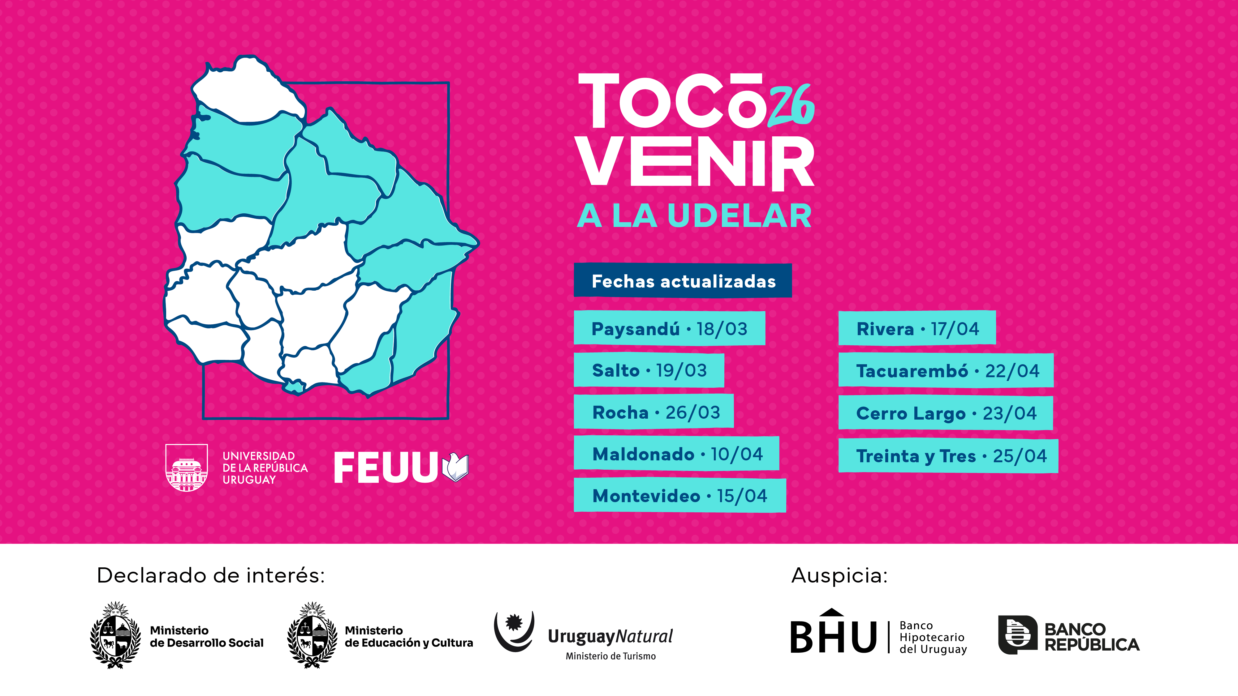 La Universidad de la República (Udelar) lanza la edición 2026 del «Tocó Venir», el evento abierto y gratuito que da la bienvenida a las y los estudiantes que comienzan su formación en la institución.