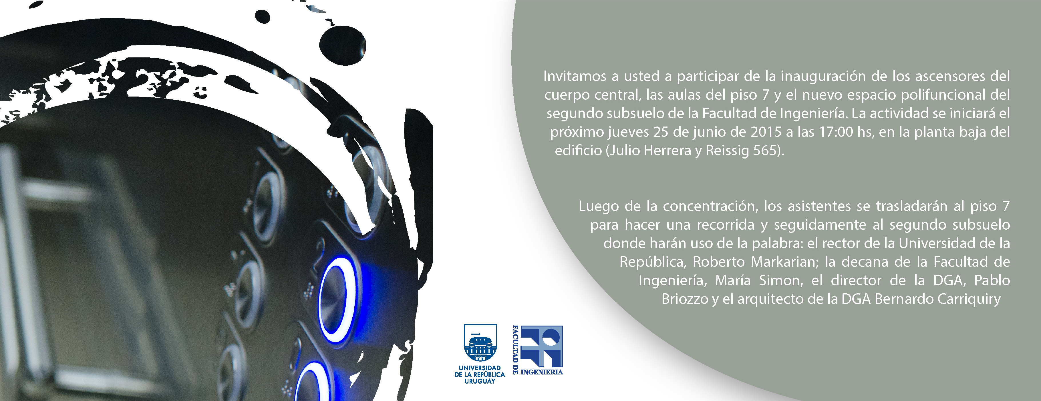 El próximo jueves 25 de junio de 2015 a las 17:00 hs se llevará a cabo la inauguración de los ascensores del cuerpo central, las aulas del piso 7 y el nuevo espacio polifuncional del segundo subsuelo de la Facultad de Ingeniería.