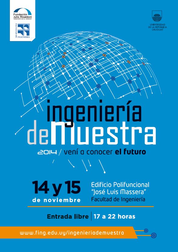 • - el viernes 14 a la hora 17 se realizará la ceremonia de inauguración de Ingeniería deMuestra en el anfiteatro de edificio polifuncional José Luis Massera. Luego la muestra quedará abierta al público.