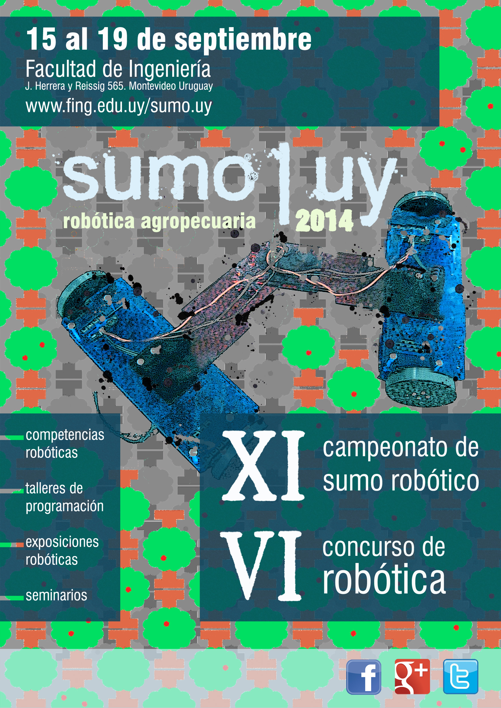 Del 15 al 19 de setiembre se realizará en la Facultad de Ingeniería el XI Campeonato de Sumo Robótico y VI Concurso de Robótica. Competencias y demostraciones robóticas, talleres, charlas, exposiciones y seminarios sobre la temática son algunas de las actividades que tendrá el evento, que se llevará a cabo en simultaneo con la XL Conferencia Latinoamericana en Informática (CLEI 2014).