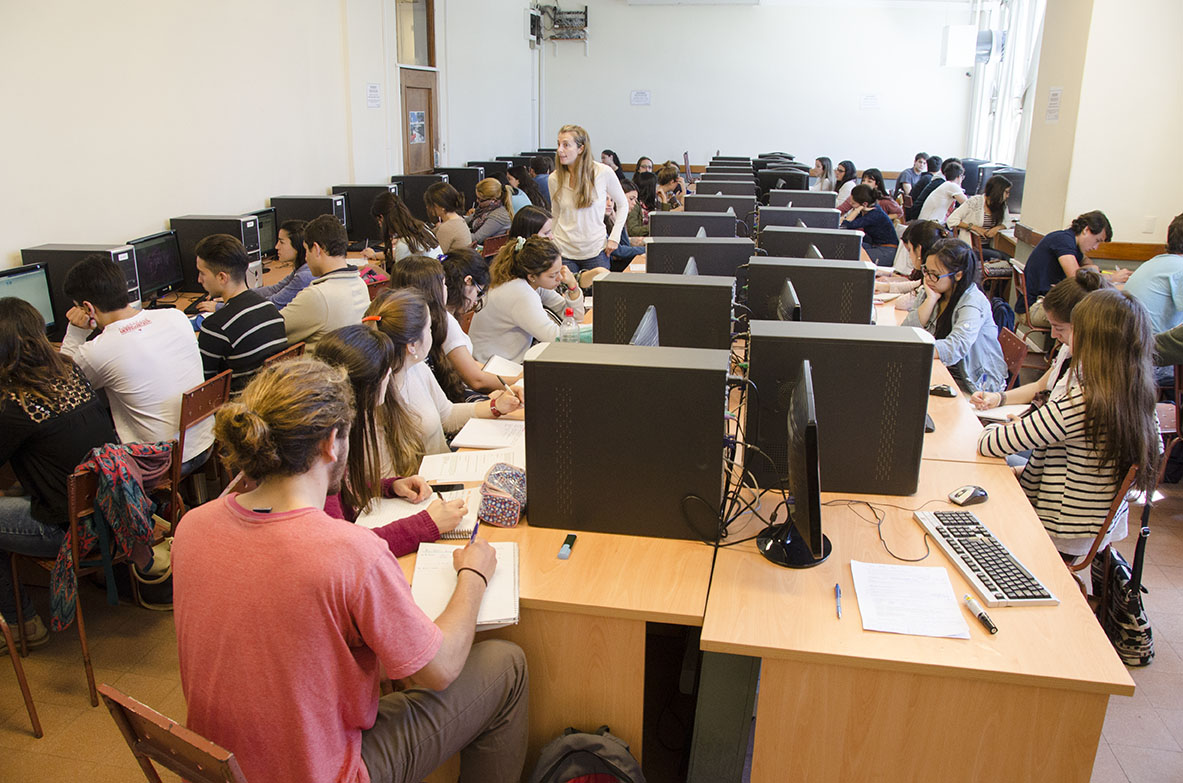 Estudiantes de 3er año de la carrera de Doctor en Medicina concurren a las salas de informática de la Facultad de Ingeniería para realizar un taller como parte de la asignatura Metodología Científica I.