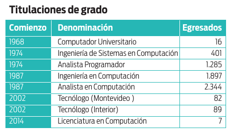 Un parámetro significativo de estas cinco décadas de la computación en la Udelar es la cantidad de egresados de sus carreras de grado y posgrado en la disciplina. Los datos hablan por sí solos.