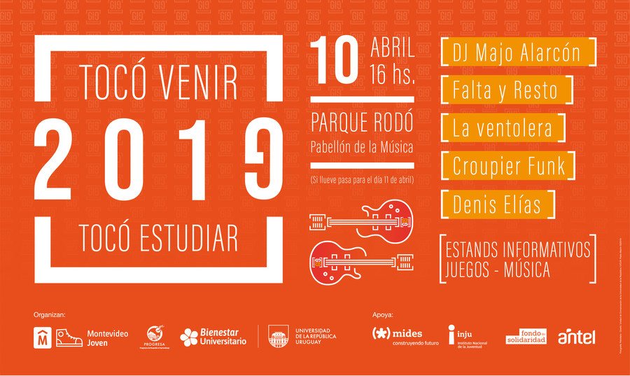 En la organización del Tocó Venir participan el Programa de Respaldo al Aprendizaje y el Servicio Central de Bienestar Universitario de la Udelar,el INJU y la IM.