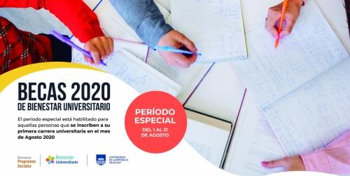 El Servicio Central de Bienestar Universitario (SCBU) informa que se habilita un período especial de solicitud de becas dirigido a estudiantes que se inscriban a su primera carrera en Udelar desde el 1 al 31 de agosto de 2020.