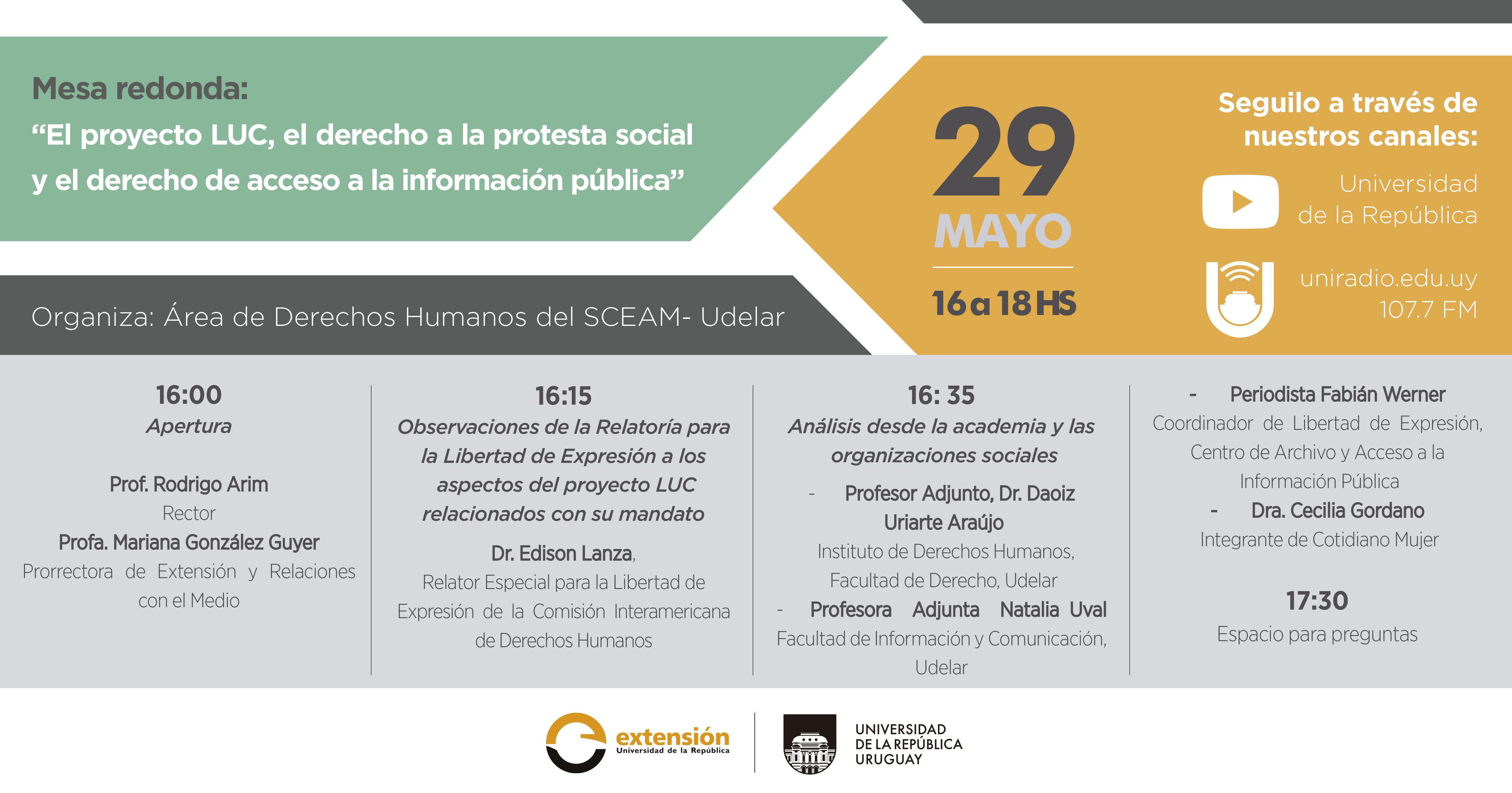 Mesa redonda “El proyecto LUC, el derecho a la protesta social y el derecho de acceso a la información pública”