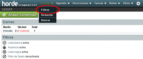 - Dirigirse a la sección Correo y dentro de ésta a Filtros.