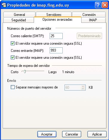 - Si usted tiene configurado Microsoft Outlook para leer el correo usando el protocolo IMAP, donde en esta pantalla aparece 'pop.fing.edu.uy' debería aparecer 'imap.fing.edu.uy'.