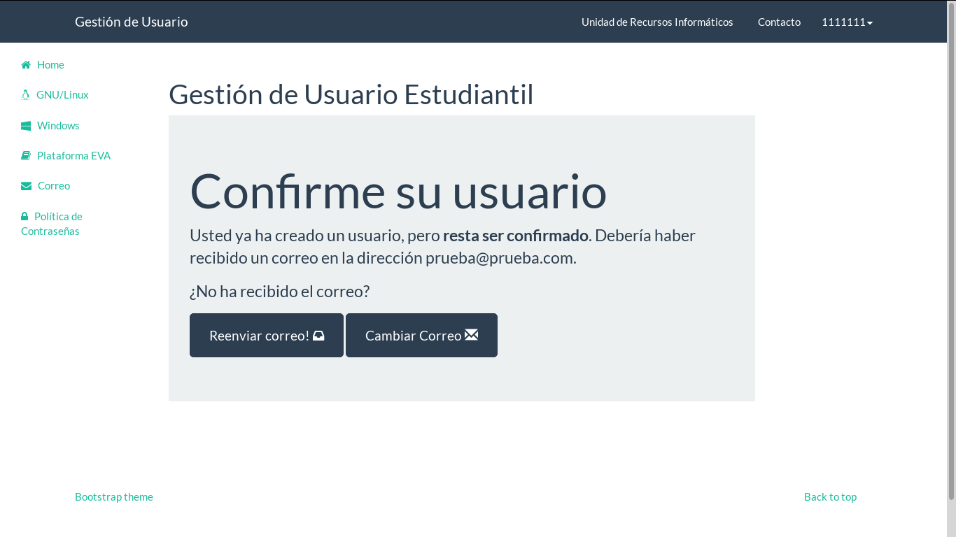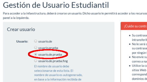 A continuación se desplegará la siguiente página en la que deberá seleccionar uno de las opciones autogeneradas como nombre de usuario. Para este ejemplo se ha decidido elegir el nombre de usuario "usuario.de.prueba".
