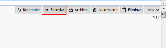 3. Luego de esto, hay que seleccionar el correo que se desea reportar y hacer click en la opción de reenviar.