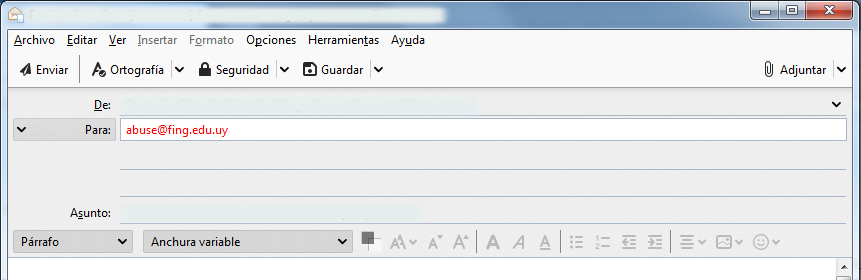 4. Por último se debe enviar el correo a la direccion abuse@fing.edu.uy