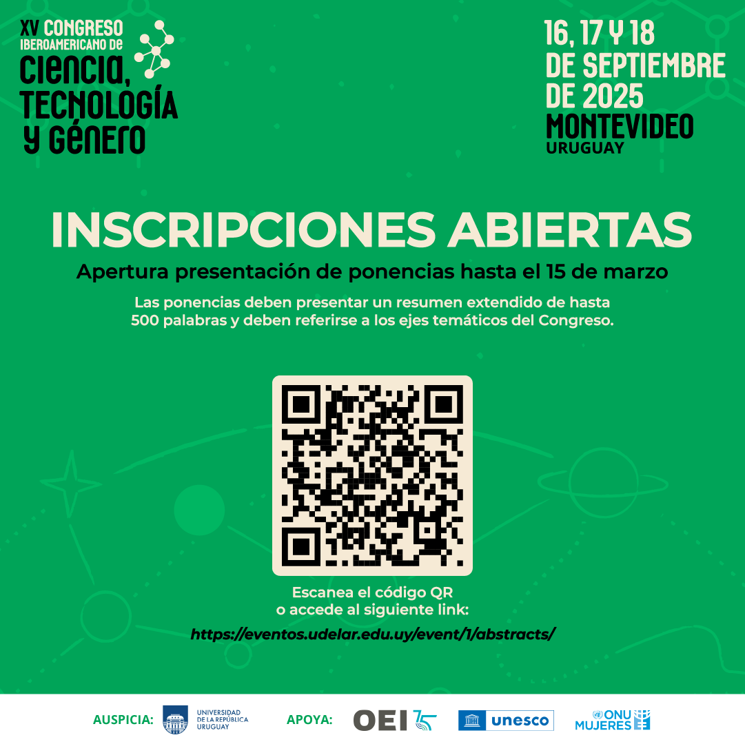 El XV Congreso Iberoamericano de Ciencia, Tecnología y Género se celebrará en Montevideo, Uruguay, en septiembre de 2025, abriendo su convocatoria a presentación de trabajos hasta el 15 de marzo de 2025. Serán presentaciones de avances de investigación/es culminadas, tanto individuales como colectivas, desde cualquier área disciplinar o interdisciplinar, enmarcadas en alguno de los ejes centrales.