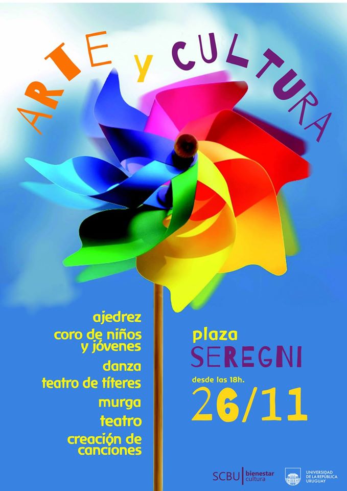 Los talleres y proyectos del Área de Cultura de Bienestar Universitario se presentan el sábado 26 de noviembre a las 18 hs en la Plaza Líber Seregni. “Arte y Cultura” es el nombre de la actividad que centra las propuestas culturales universitarias en un espacio público y abierto.