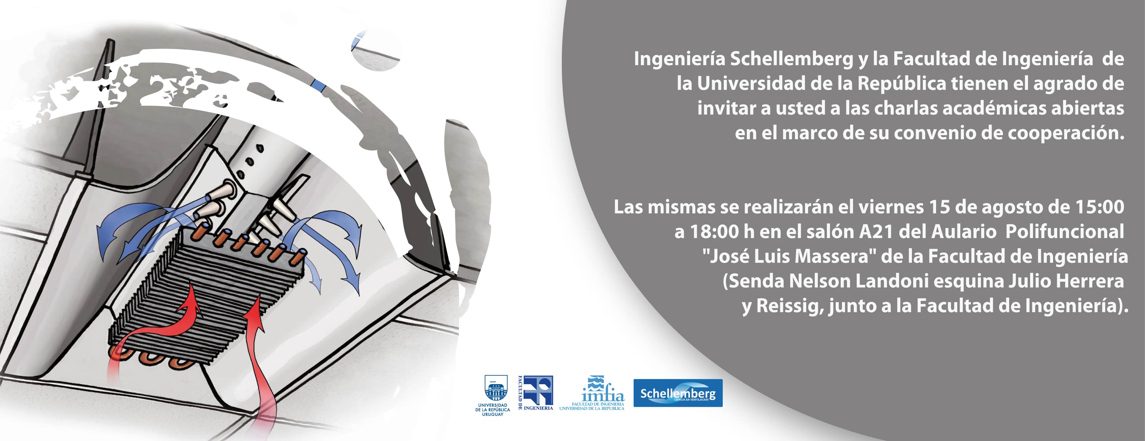 Ingeniería Schellemberg y la Facultad de Ingeniería de la Universidad de la República invitan a las charlas académicas abiertas en el marco de su convenio de cooperación. Las mismas se realizarán el viernes 15 de agosto de 15:00 a 18:00 h en el salón A21 del Aulario Polifuncional "José Luis Massera" de la Facultad de Ingeniería (Senda Nelson Landoni esquina Julio Herrera y Reissig, junto a la Facultad de Ingeniería).