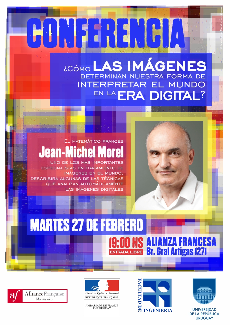El próximo martes 27 de febrero, a las 19.00 h en la Alianza Francesa (Br. Gral Artigas 1271), el matemático francés Jean-Michel Morel, uno de los más importantes especialistas mundiales en tratamiento de imágenes, ofrecerá una descripción de algunas de las técnicas que analizan automáticamente las imágenes digitales y de los progresos hechos en esta esfera, y sobre el misterio antiguo que representa la definición de la percepción visual.