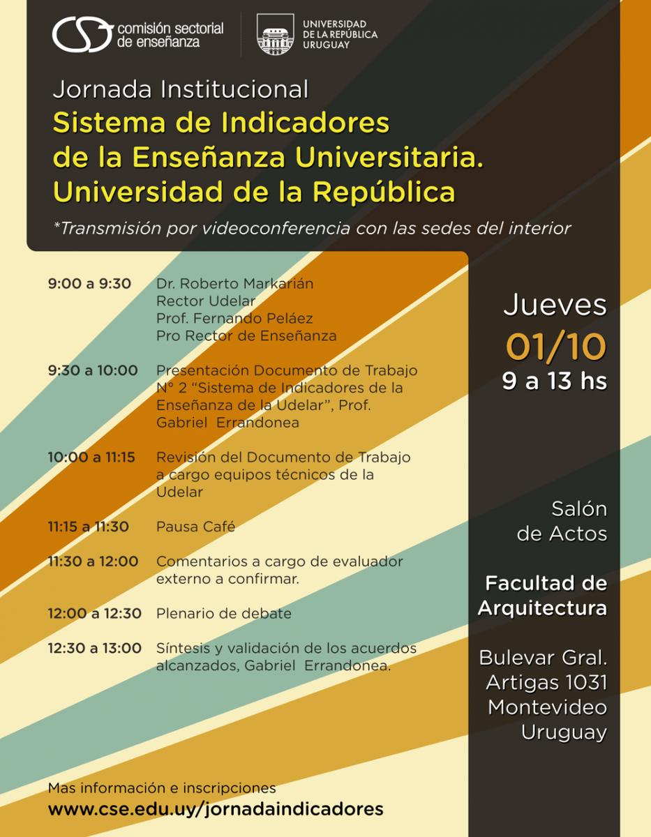 La actividad está dirigida a autoridades, representantes del cogobierno y equipos técnicos de la Universidad y constará de una mesa de análisis y profundización del Informe de propuesta de Sistema de Indicadores de Enseñanza para la Universidad de la República.