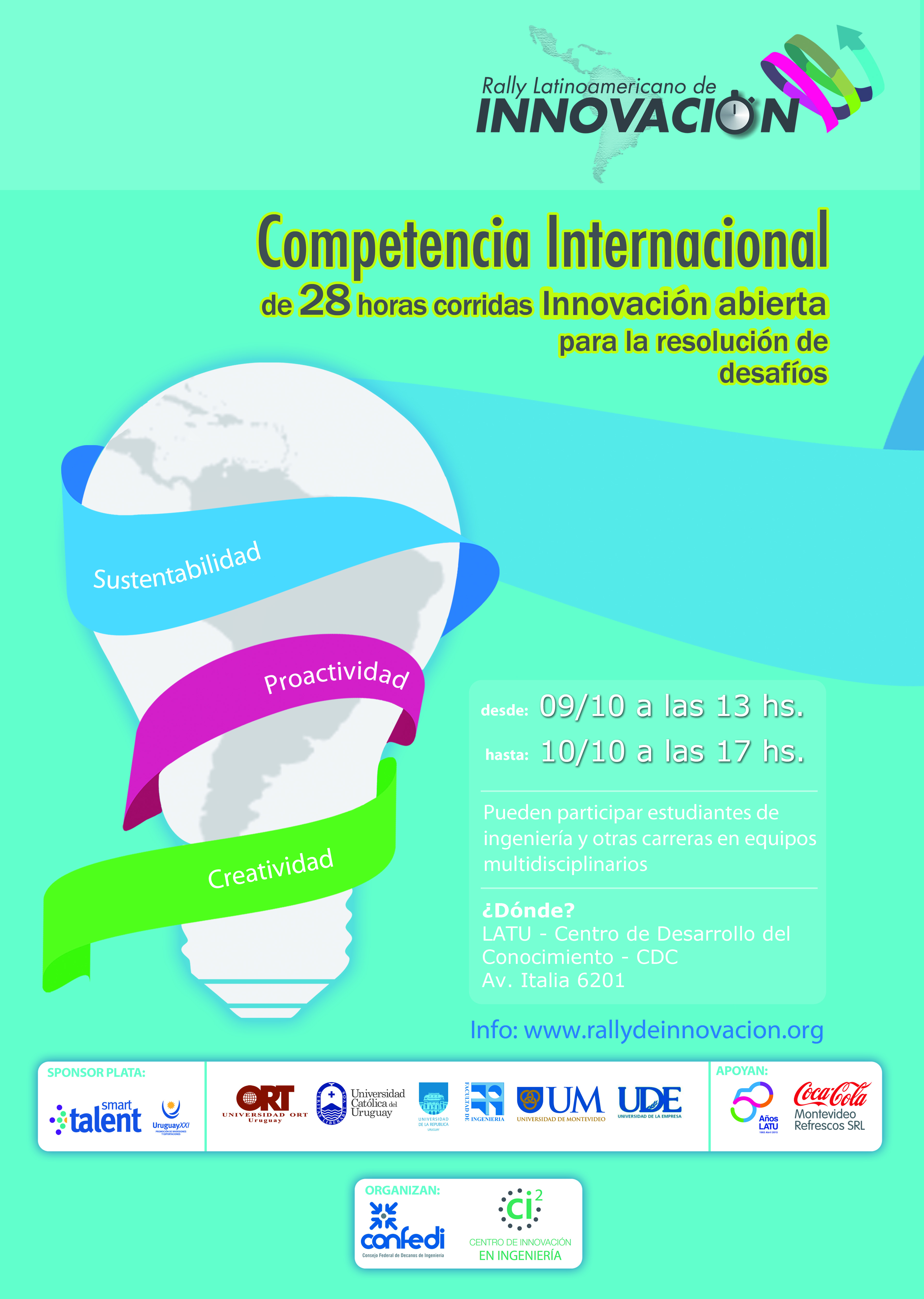 Los días 9 y 10 de octubre de 2015 se realizará en el LATU la segunda edición del "Rally Latinoamericano de Innovación", competencia internacional que tiene como propósito fomentar la innovación abierta en estudiantes de carreras de ingeniería de Latinoamérica.