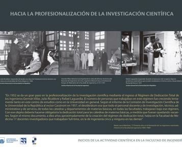 La presente Fotogalería, inaugurada el 25 de Junio de 2014, tiene por finalidad ofrecer a la ciudadanía información sobre temáticas relacionadas a la ciencia, la tecnología y la Innovación. Esta primera muestra incluye un conjunto de imágenes y textos mediante los cuales se intenta establecer un relato en el que se bosquejen las condiciones ideológicas y materiales en las que se desarrolló una rama fundamental de la Facultad de Ingeniería, como es la investigación científica.
