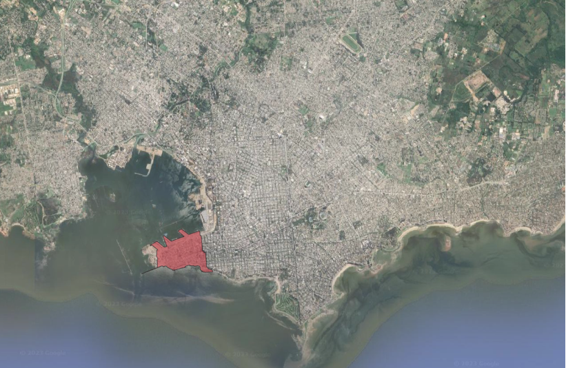 Localización de la zona de estudio, Ciudad Vieja en Montevideo, Uruguay