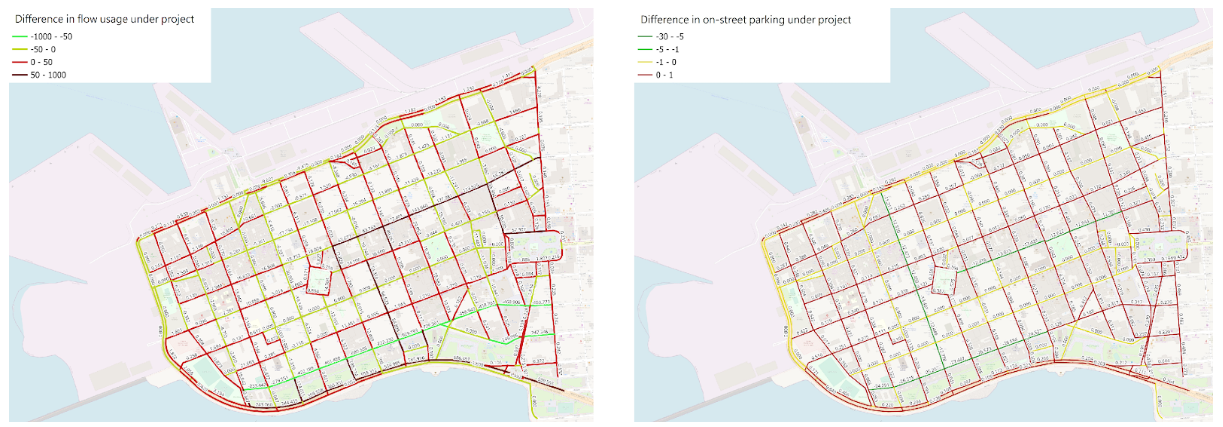 Los desarrollos futuros incluyen la mejora del tiempo de ejecución del algoritmo de equilibrio (dado que la red expandida es particularmente grande) y la extensión del modelo para sugerir automáticamente decisiones óptimas con respecto a la asignación del espacio público urbano.