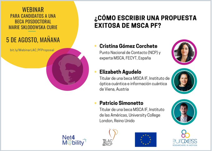 El jueves 5 de agosto a las 11:00hs se llevará a cabo un webinar dirigido a investigadores/as con sede en Latinoamérica y el Caribe que desean postularse en una institución anfitriona europea y están considerando escribir una propuesta.