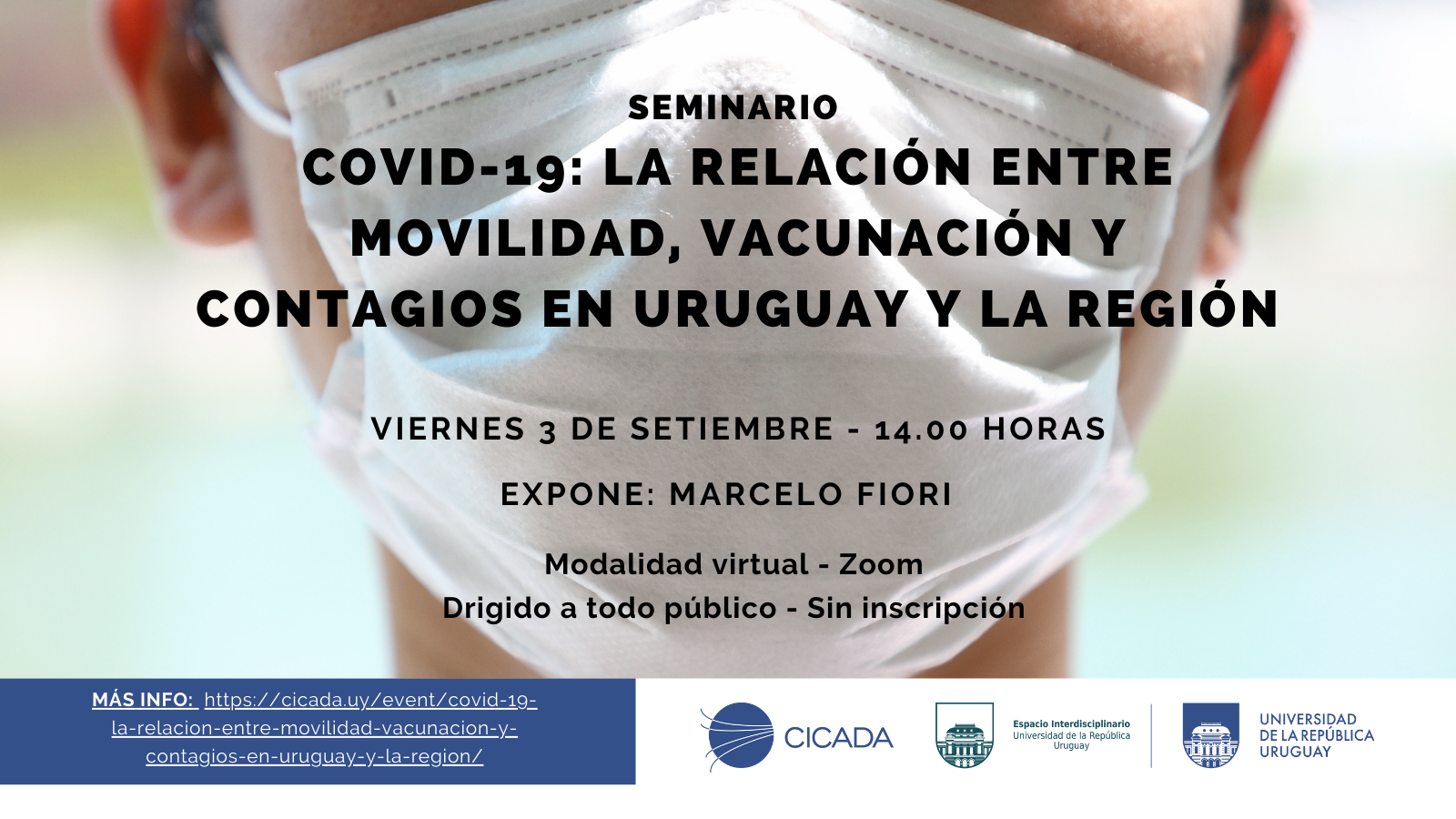 El próximo viernes 3 de setiembre a las 14hs, se realizará un seminario organizado por el Centro Interdisciplinario en Ciencia de Datos y Aprendizaje Automático (CICADA), denominado “Covid-19: La relación entre movilidad, vacunación y contagios en Uruguay y la región”