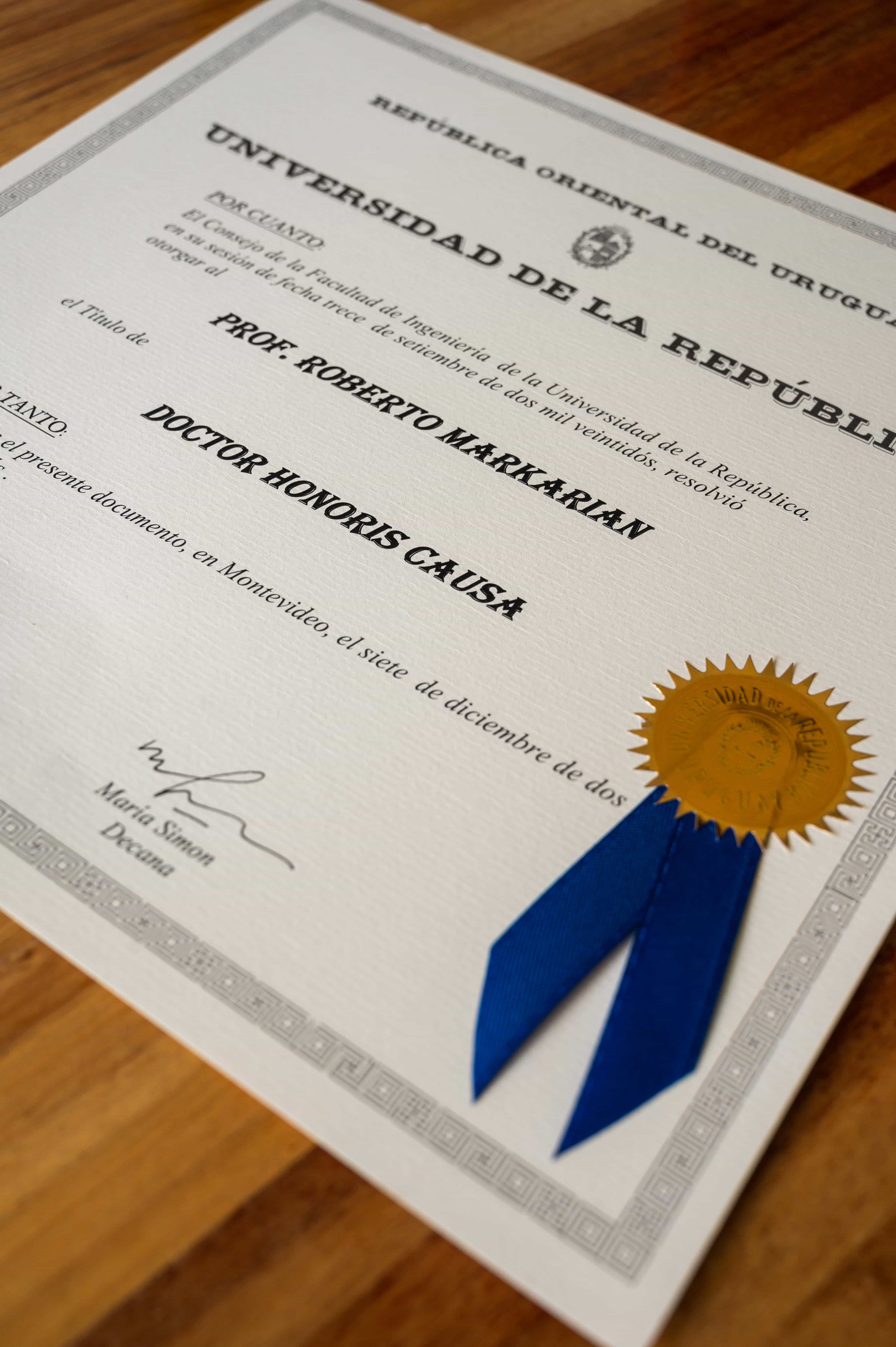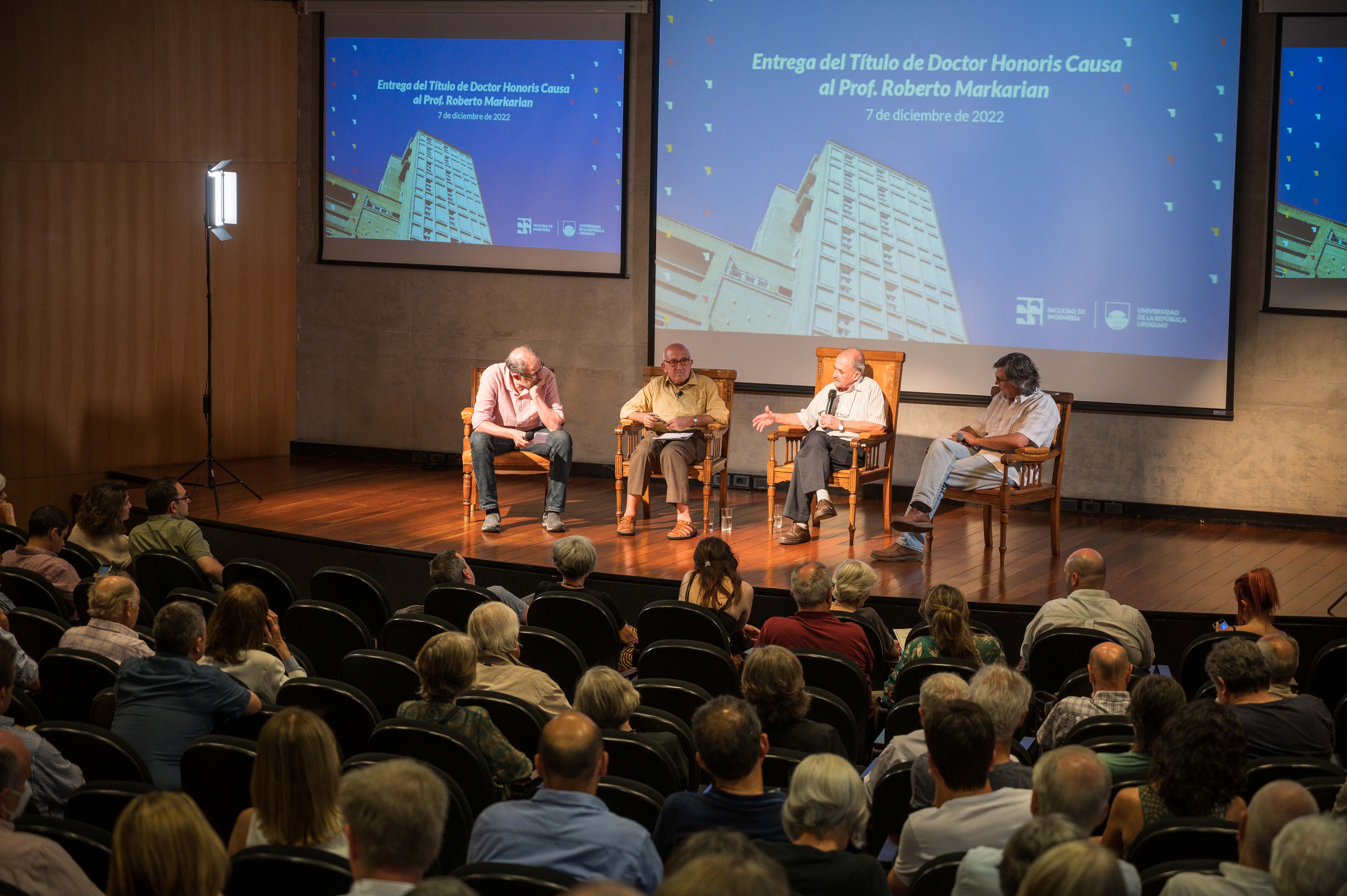 El Consejo de la Facultad de Ingeniería le otorgó al Prof. Roberto Markarian el Título de Doctor Honoris Causa de la Facultad de Ingeniería. La ceremonia de entrega se realizó el miércoles 7 de diciembre de 2022 en la Sala de Actos “Ing. Eladio Dieste“.