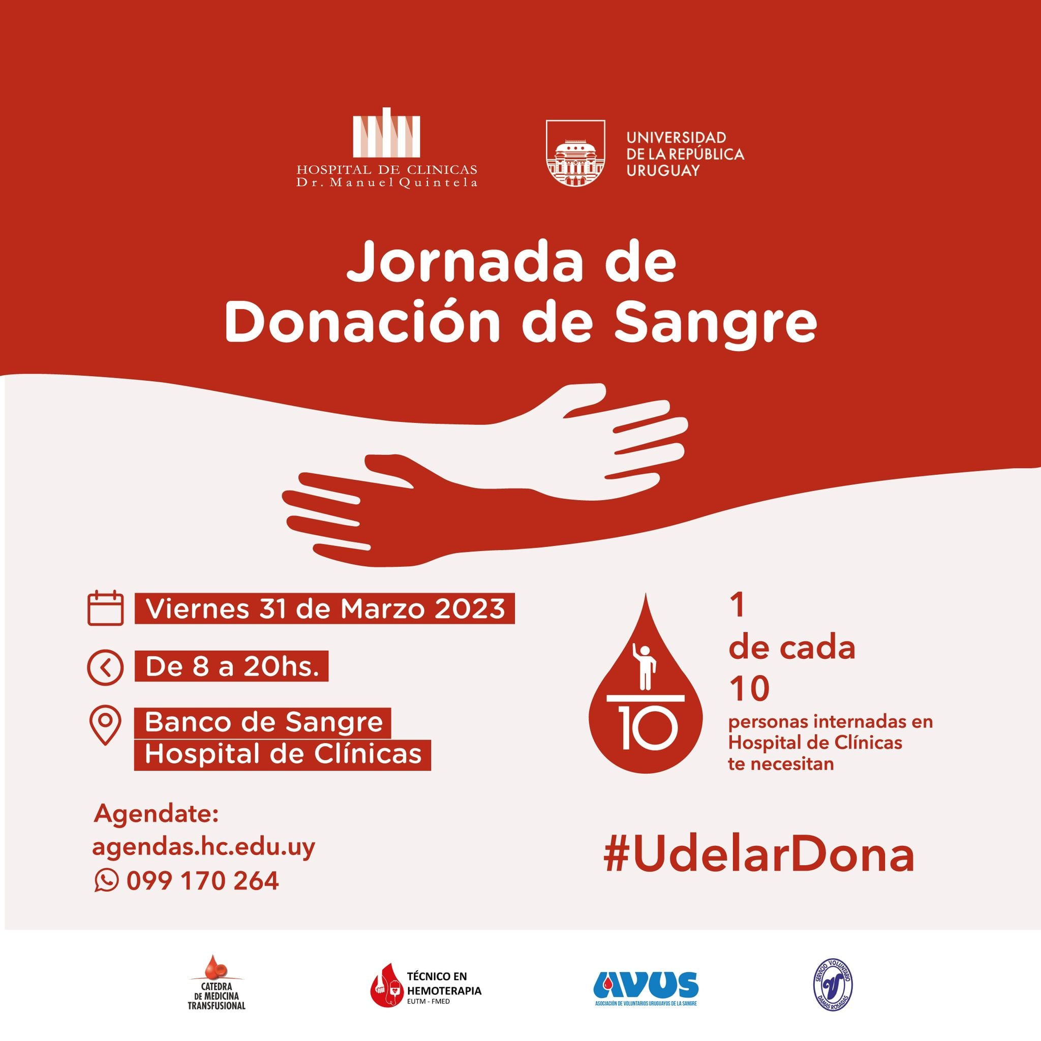 El Hospital de Clínicas realiza este viernes 31 de marzo de 2023 una jornada de donación de sangre con horario extendido de 8 a 20hs.
