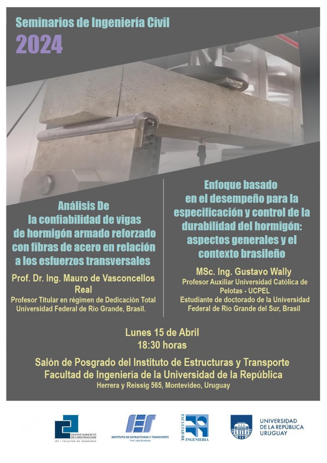 Este lunes 15 de abril de 2024 se realizará un nuevo Seminario del Instituto de Estructuras y Transporte (IET) sobre Ingeniería Civil que tratará las siguientes temáticas: