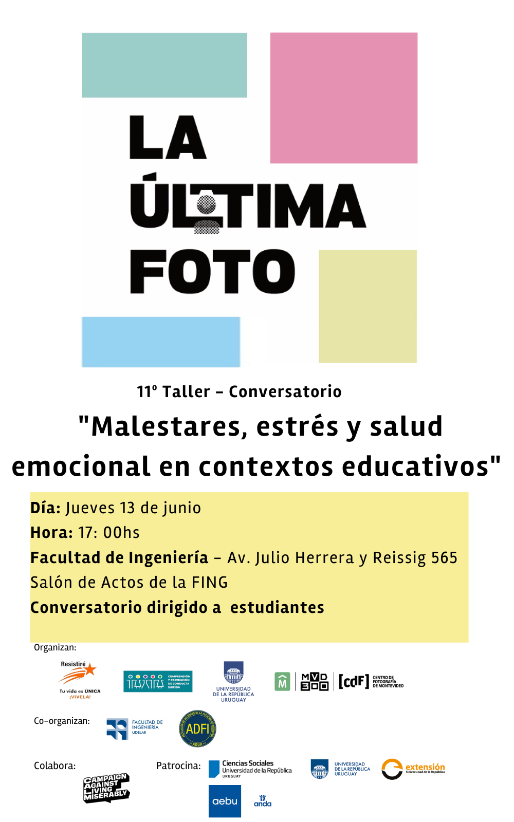 Estos talleres son abiertos a toda la comunidad universitaria, siendo este dirigido especialmente a estudiantes.  Podés conocer más sobre la campaña en: https://laultimafoto.uy/