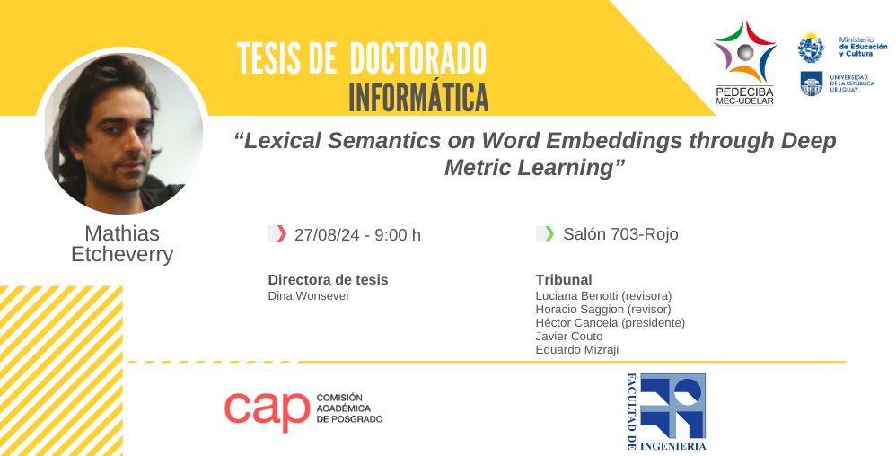 Tribunal: Luciana Benotti (revisora), Horacio Saggion (revisor), Héctor Cancela (presidente), Javier Couto, Eduardo Mizraji.