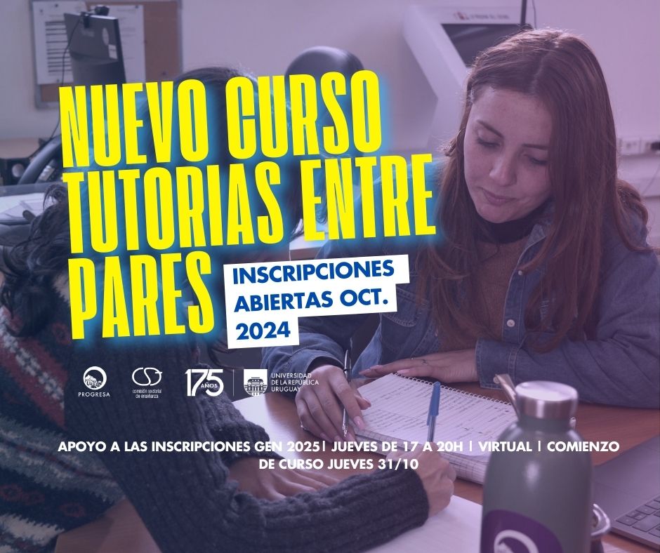 Se encuentra abierto el periodo de inscripción para estudiantes de Udelar que deseen acompañar a nuevo/as estudiantes en su proceso de ingreso a la universidad. Esta propuesta teórico-práctica en formato de curso, otorga créditos y forma a los/as tutores/as para guiar a la generación 2025 en todo el país, brindando apoyo en los pasos de inscripción, periodos de cada Facultad y los dispositivos que la Universidad ofrece.
