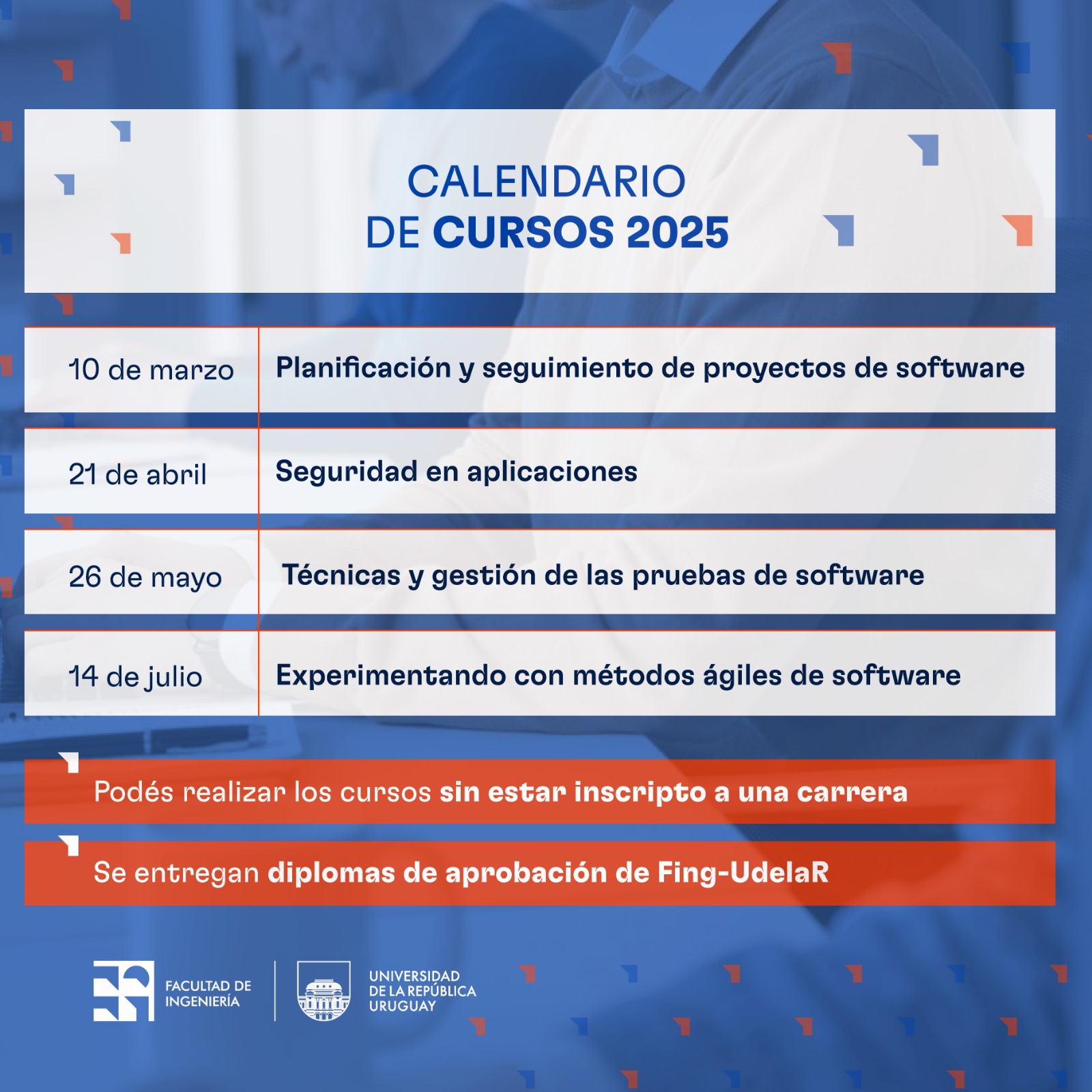 Este programa está diseñado para profesionales de informática, como licenciados/as, ingenieros/as o egresados/as de carreras afines, que buscan destacarse en un sector en constante evolución. Es posible realizar la especialización completa o elegir los cursos que más se ajusten a tus intereses y necesidades profesionales, con un plan de estudios flexible y a medida. Conocelo aquí