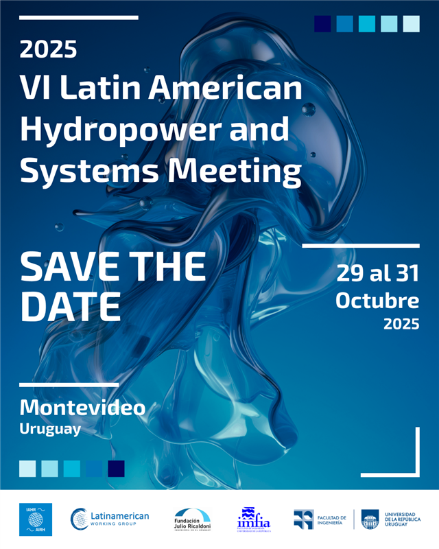 Del 27 al 31 de octubre de 2025 tendrá lugar el VI Latin American Hydropower and Systems Meeting en una nueva edición que se llevará a cabo en Montevideo, Uruguay. Este evento reúne a investigadores/as, profesionales, estudiantes y empresas del sector hidroenergético para compartir los últimos avances en el desarrollo, operación y sostenibilidad de los sistemas hidroeléctricos.