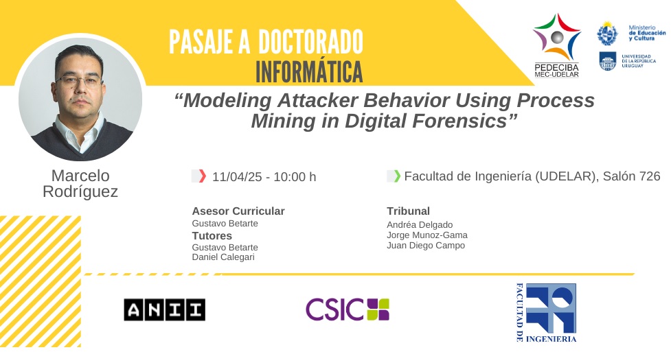 Viernes 11/04 desde las 10:00hsFacultad de ingeniería, salón 726 Asesor curricular: Gustavo Betarte Tutores: Gustavo Betarte, Daniel Calegari Tribunal: Andrea Delgado, Jorge Munoz-Gama, Juan Diego Campo