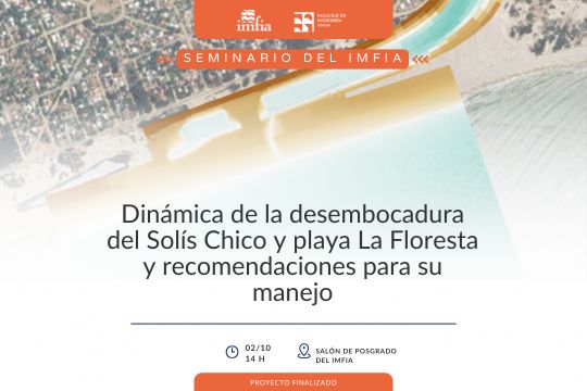 Este 2 de octubre de 2025 tendrá lugar un nuevo Seminario del Instituto de Mecánica de los Fluidos e Ingeniería Ambiental (IMFIA) titulado “Dinámica de la desembocadura del Solís Chico y playa La Floresta y recomendaciones para su manejo”; dictado por Mónica Fossati y Sebastían Solari.