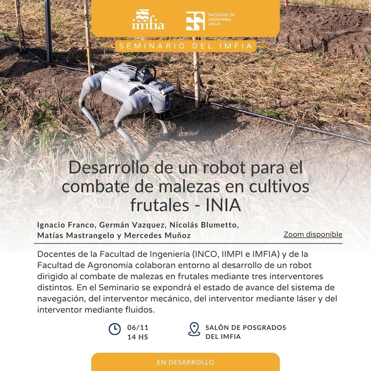 Seminario del IMFIA: "Desarrollo de robot para el combate de malezas en cultivos frutales - INIA"