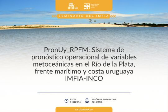 El Instituto de Mecánica de los Fluidos e Ingeniería Ambiental de la Facultad de Ingeniería organiza nuevamente su ciclo de seminarios abiertos al público. Este jueves 9 de abril tendrá lugar el seminario "PronUy_RPFM: Sistema de pronóstico operacional de variables metoceánicas en el Río de la Plata, frente marítimo y costa uruguaya” (IMFIA-INCO).