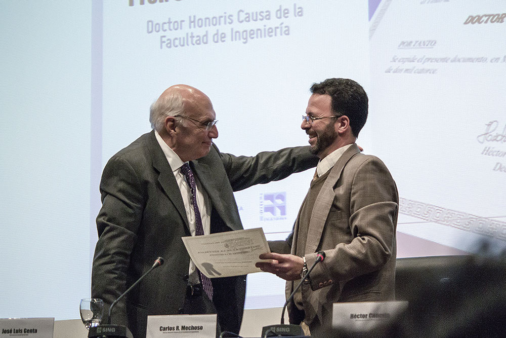 La Facultad de Ingeniería de la Universidad de la República distinguió con el título de Doctor Honoris Causa al Prof. Carlos R. Mechoso, docente de una brillante carrera académica e internacionalmente reconocido por su trabajo en Dinámica y Modelación Atmosférica. El evento se realizó el pasado viernes 3 de octubre en el Anfiteatro del Edificio Polifuncional "José Luis Massera".