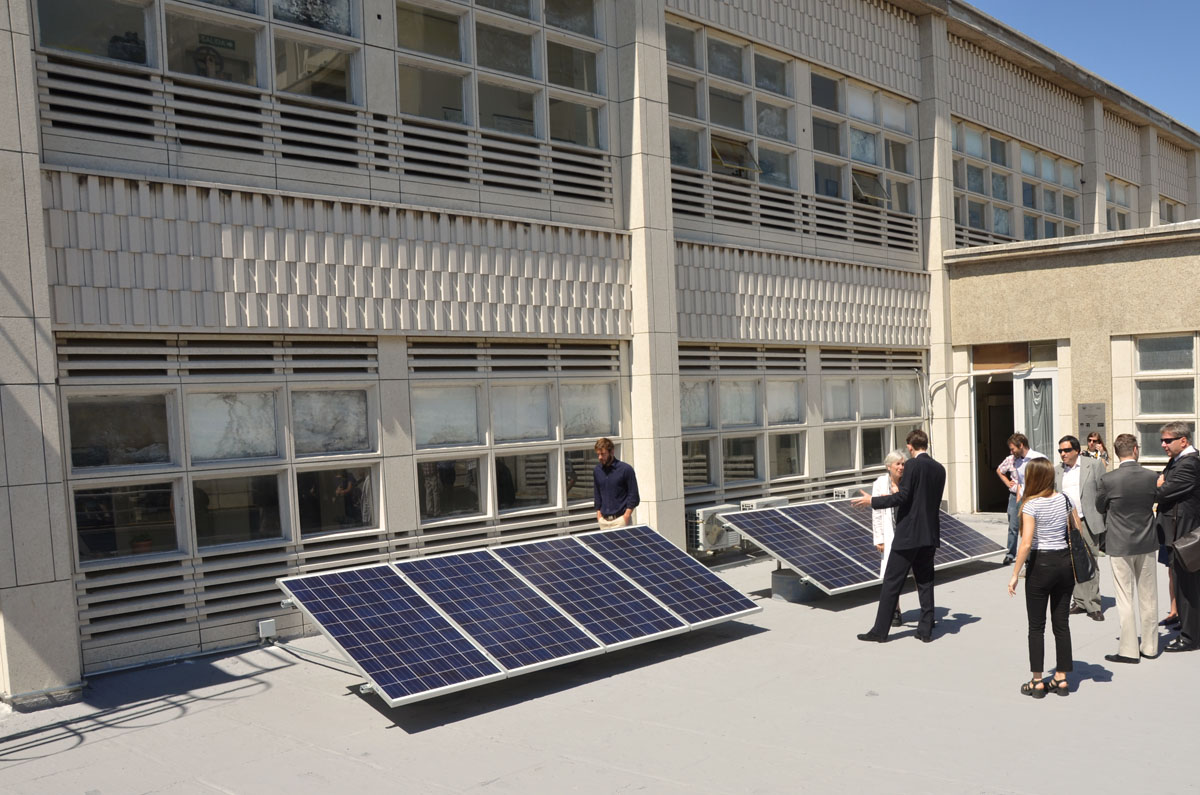 Hoy, jueves 10 de diciembre, quedó inaugurado el sistema fotovoltaico piloto de 2 kWp de la Facultad de Ingeniería, instalado en la terraza del Instituto de Ingeniería Eléctrica (IIE).