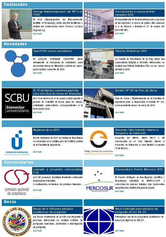 La Facultad de Ingeniería, a través de su Área de Comunicación, publica el Resumen de Noticias de la Institución, donde se sintetizan los principales eventos, actividades, convocatorias y becas que se realizan o conciernen a nuestra casa de estudios.